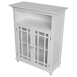 - Latticed, glass-paneled doors pull open with clear crystal knobs